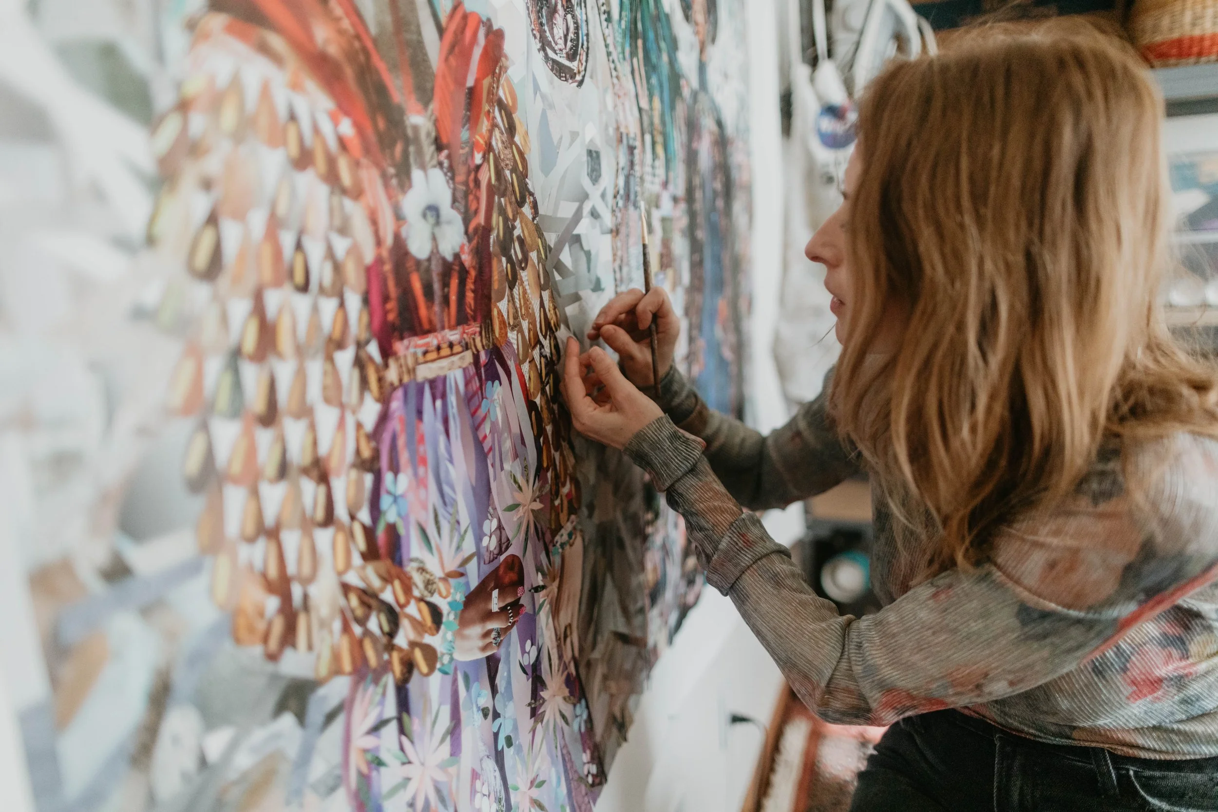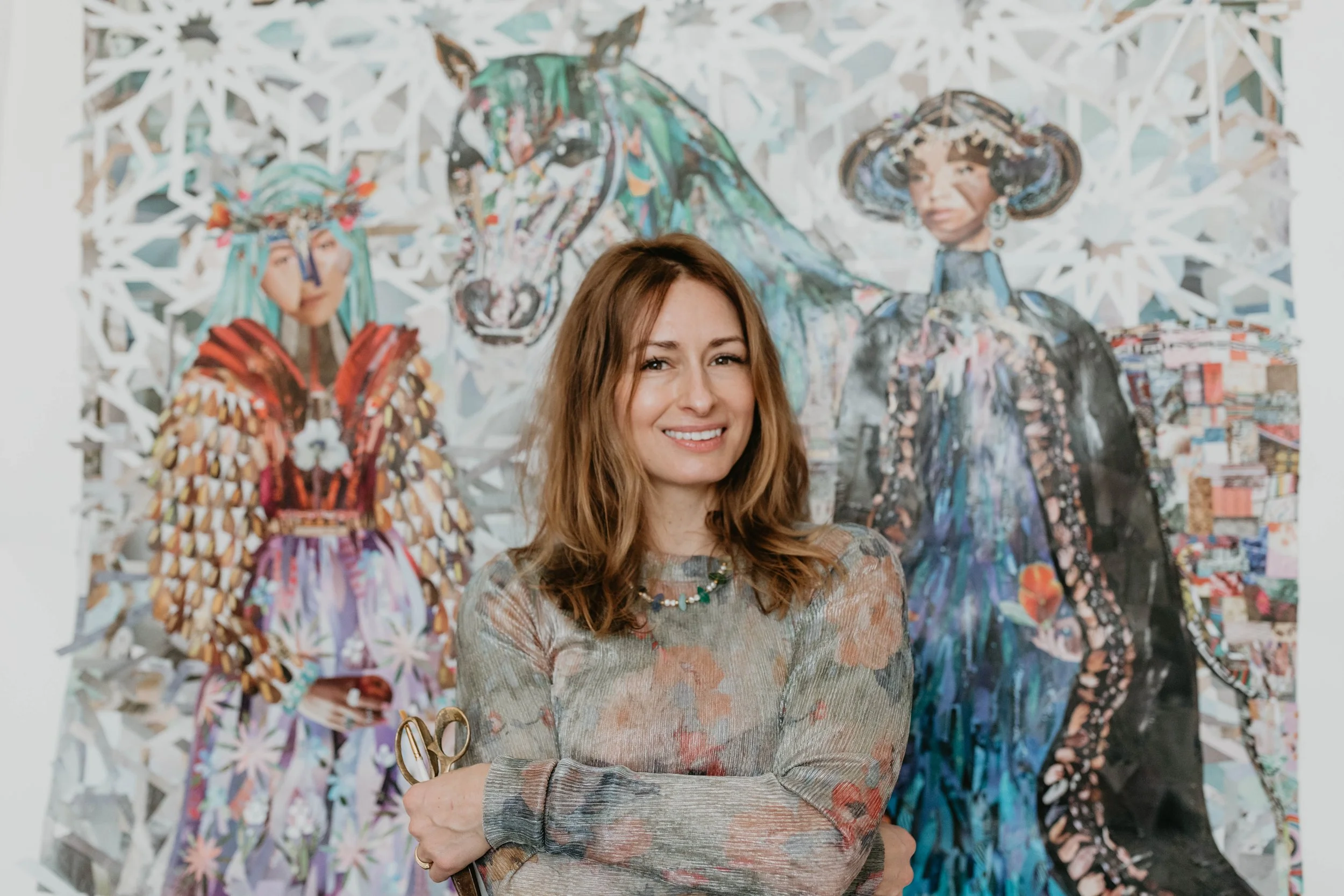 Saree Robinson is a Vermont-bred, California-based, multi-disciplined artist. Primarily known for her conceptual paper arts creations, Saree loves exploring the process of transformation. One of her favorite creative techniques is to use something off every page an entire magazine subscription -12 issues- to make a singular artwork. This process was an idea bestowed to Saree in a dream. Some of her most inspired artworks have been created using this process. Drawing inspiration from a kaleidoscope of music, international travel, her love of animals, fairy tales, a deep reverence for the Earth, haute couture fashion, her art history studies and psychedelic experiences, Saree's colorful style is instantly recognizable.