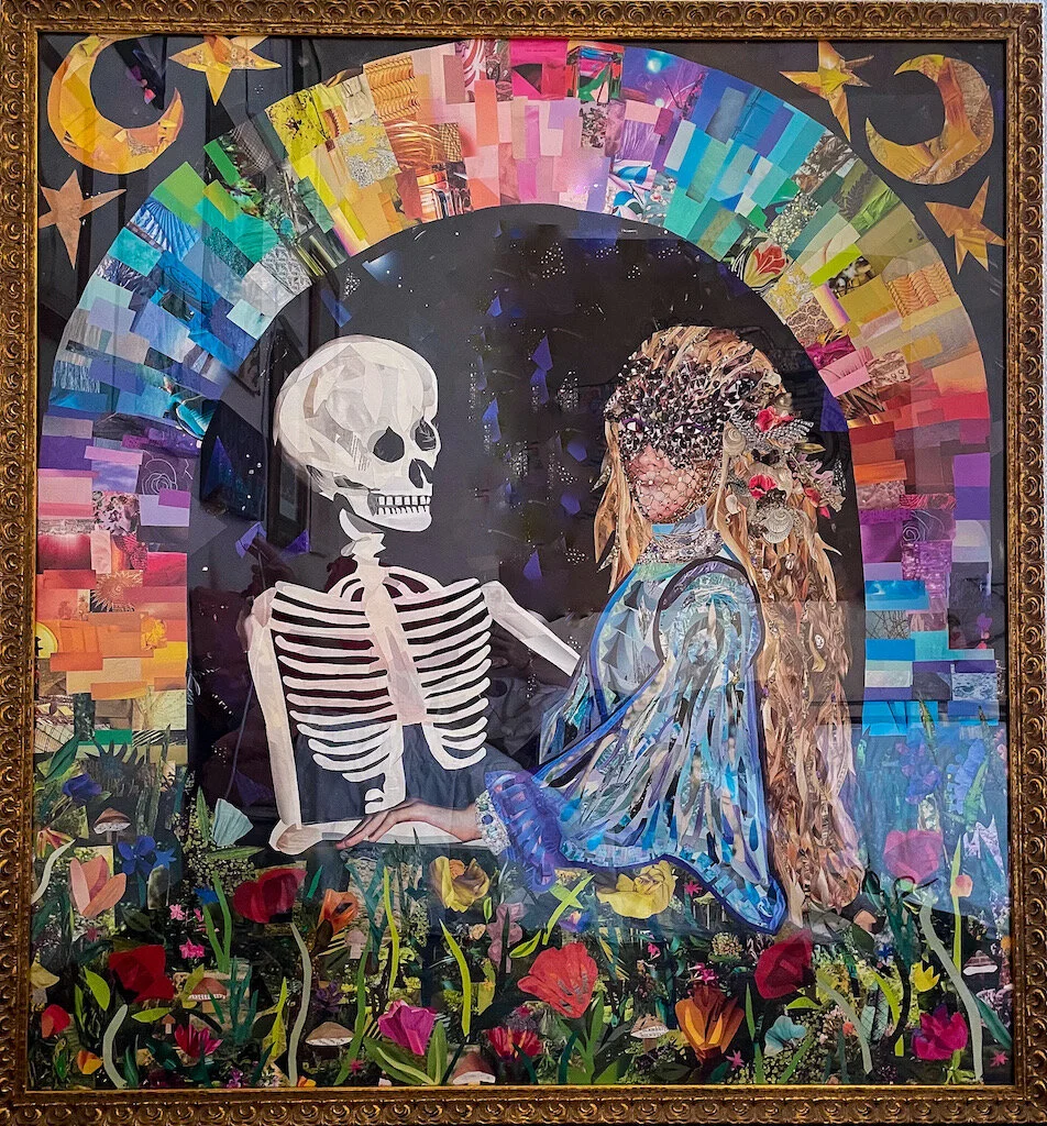 View fullsize  The Marriage of Life and Death  2021  4x4’  Created using something off every page of the 2020 Elle Magazine Subscription.  Sold