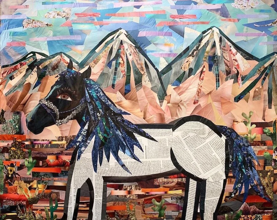 View fullsize  Desert Pony  2020  27x33’  Created using something off every page of the November 2016 Vogue Magazine, 264 pages.  Sold