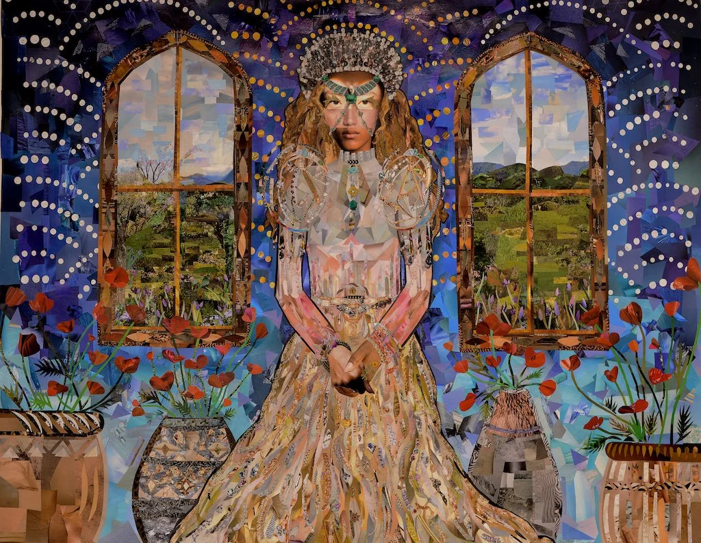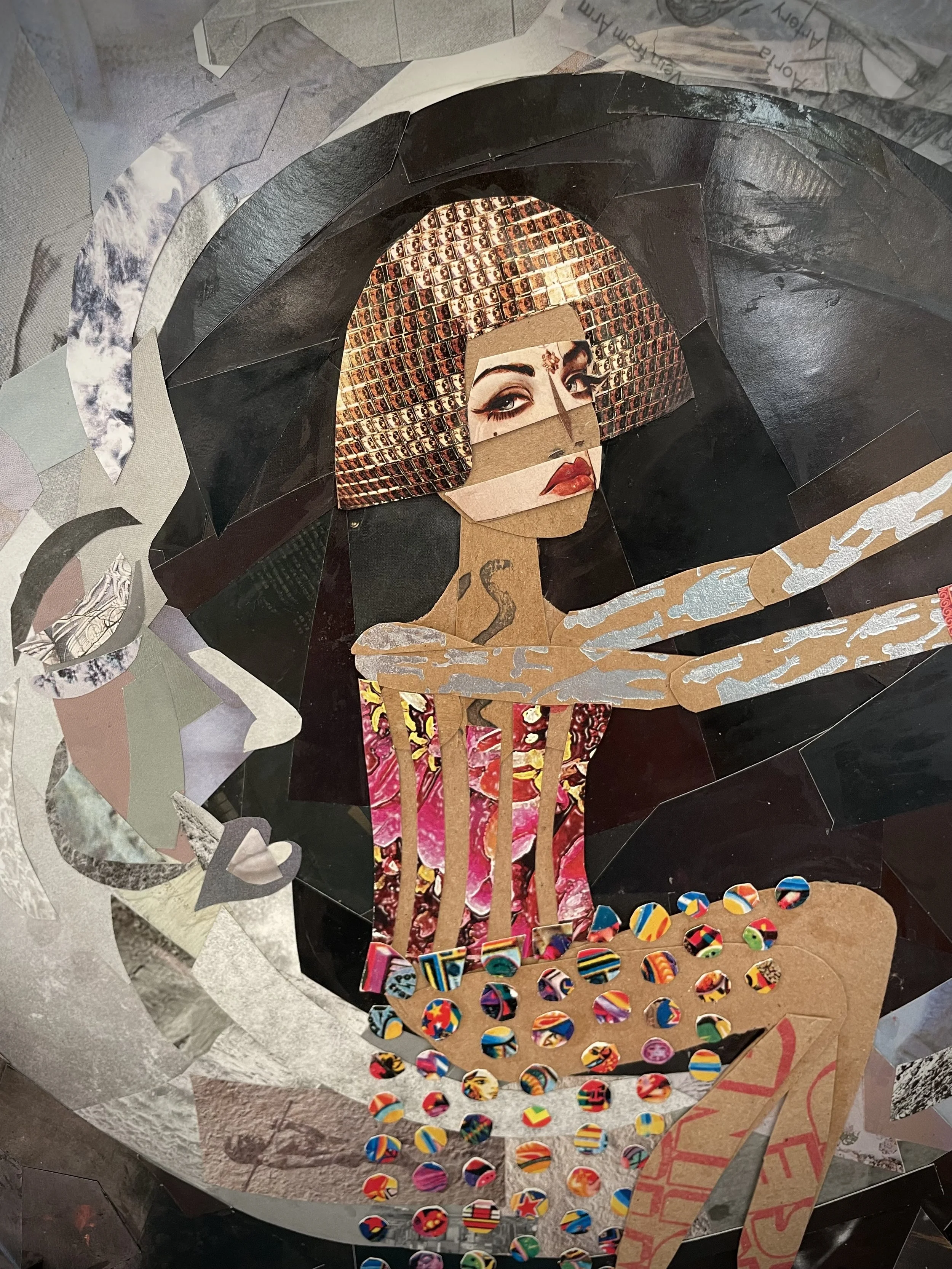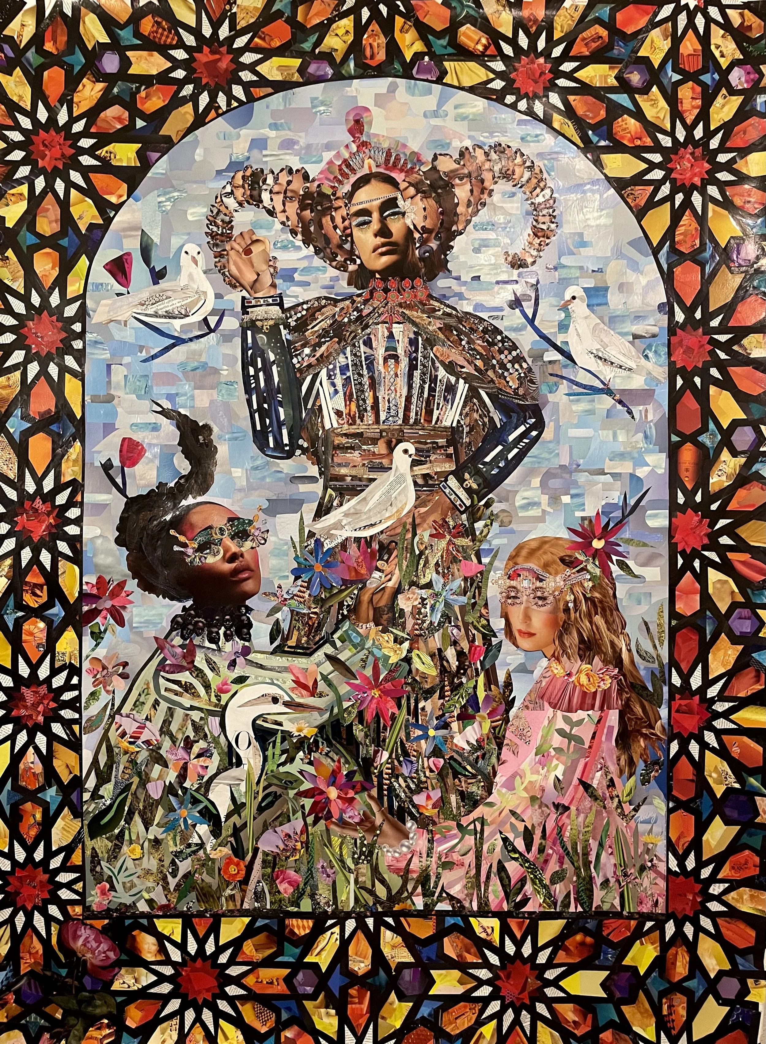 View fullsize  Queen Kamala  2020  5x6’  Created using something off every page of the 2020 Vogue Magazine Subscription.  This collage was made to celebrate Kamala Harris’ historic win.   Sold